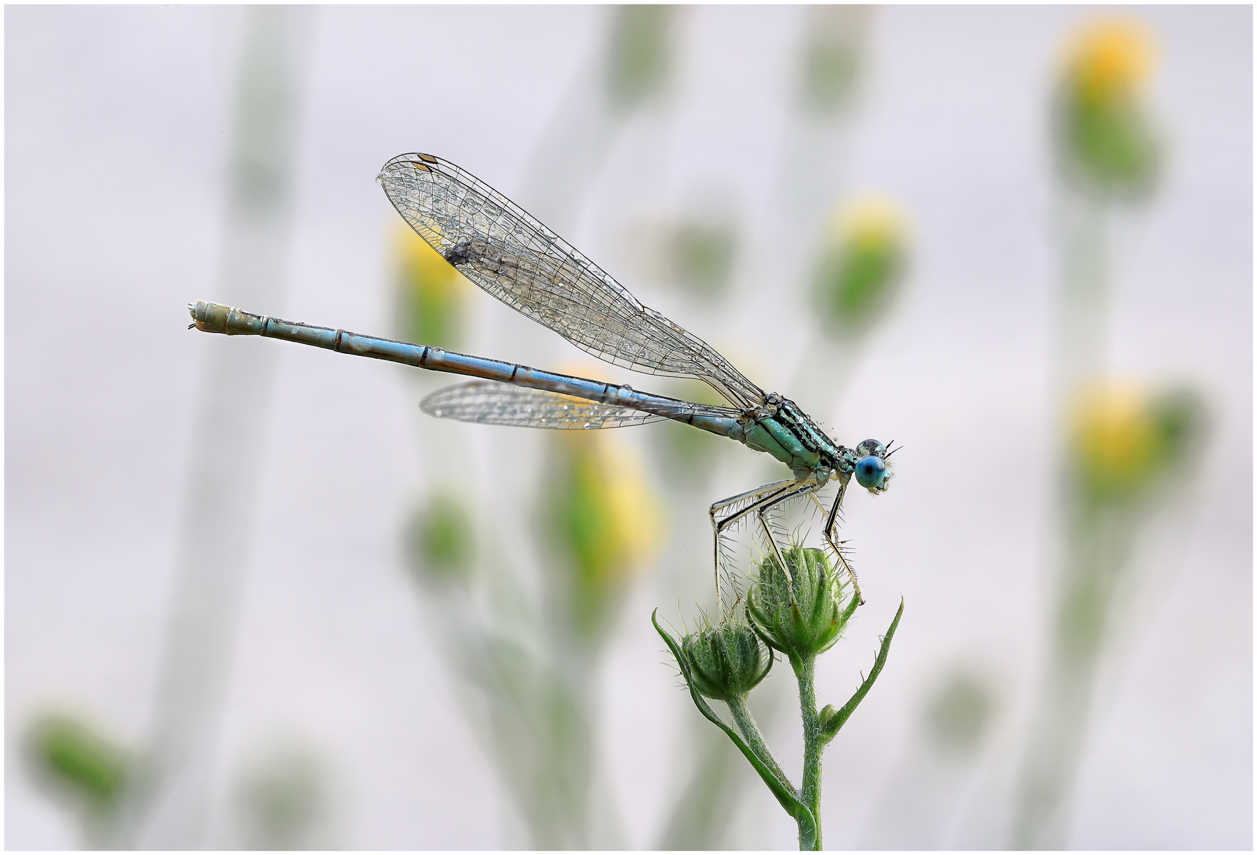 Esteticamente un immagine notevole, anche se la luce diretta sull'insetto praticamente non c'è, la resa cromatica è egregia ed il bokeh molto ben calibrato lasciando intravedere i fiorellini gialli.