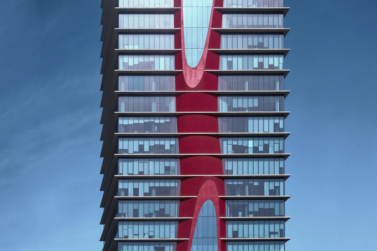 Bella struttura, le finestre e la parte centrale rossa creano un bel movimento.
