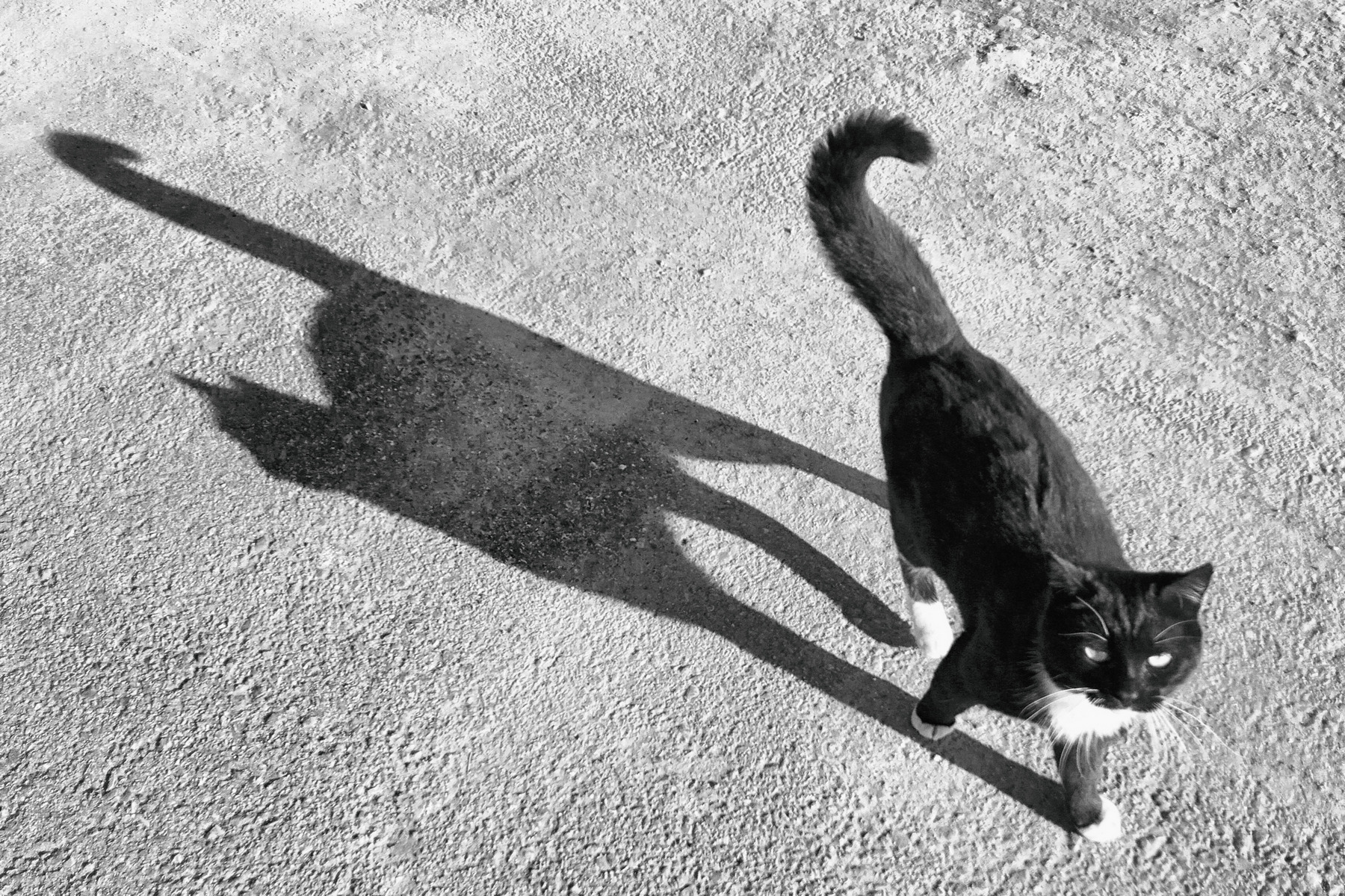 Un grazioso micio con la tipica espressione felina a metà tra il tenero e lo strafottente, assolutamente perfetta l'ombra lunga e delineata, quasi meglio del gatto stesso Wink