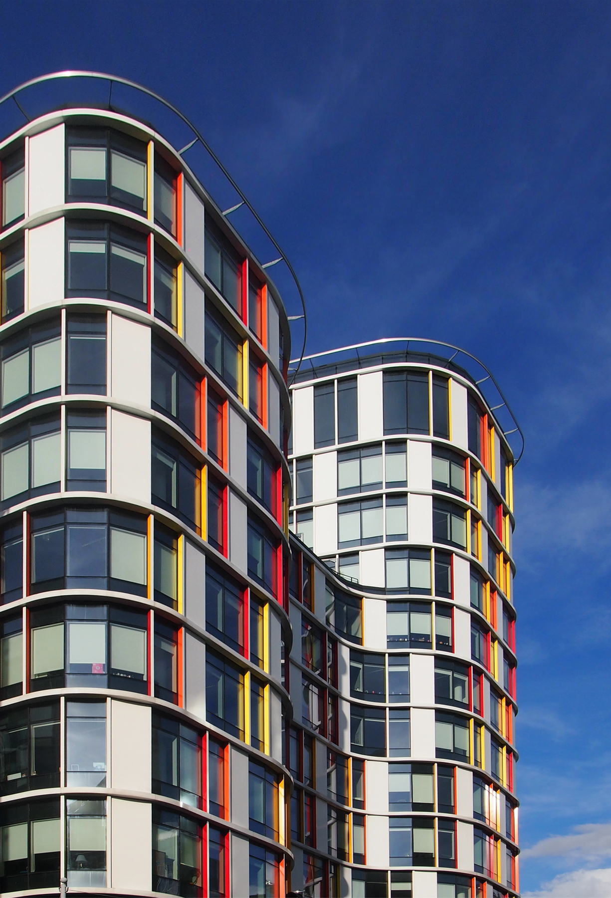 Molto bella la forma sinuosa e i colori della struttura che si stagliano su un cielo di un blu elettrico.