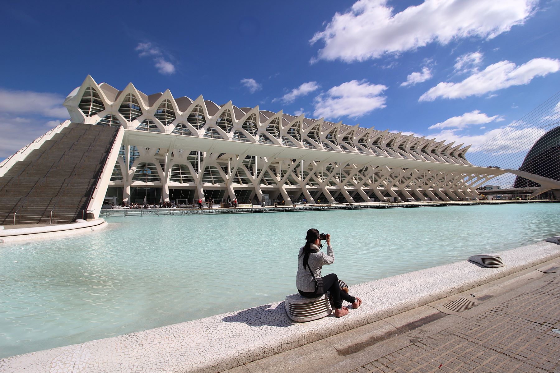 Anche se probabilmente non era tua intenzione evidenziare l’architettura, questo taglio a sinistra penalizza un po’ l’immagine, a mio avviso sarebbe stato meglio includere per intero la scalinata e tagliare di più a destra… Detto questo, i colori sono molto belli, la ripresa è nitida e pulita, ed è buono il posizionamento della ragazza, fotografa a sua volta