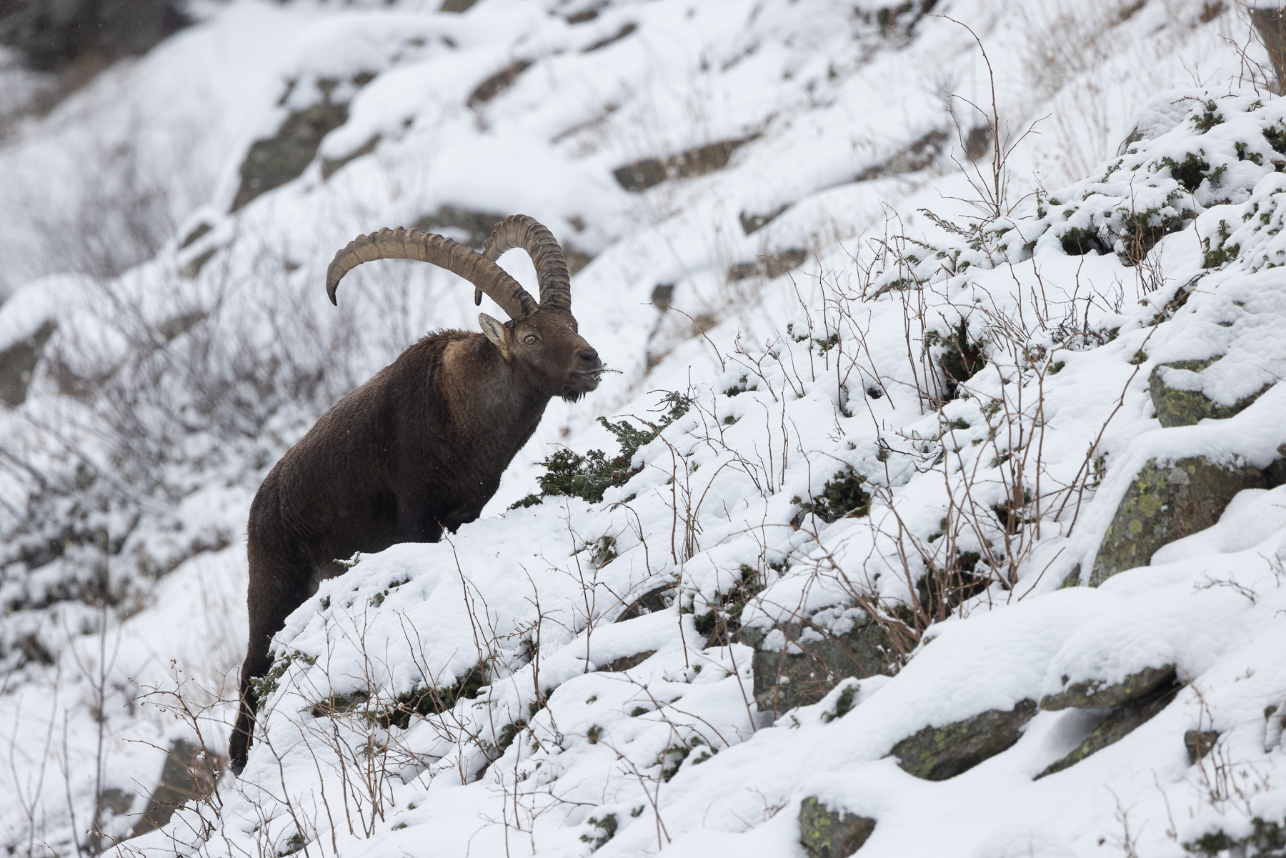 Affascinante immagine naturalistica, con la descrizione ambientale che ne aumenta il pregio. C'è il vigoroso pendio, c'è il freddo della neve: questo è il mondo dove lo stambecco solitario trova il sostentamento, per arrivare anche quest'anno agli ancora lontani pascoli verdeggianti. Ciao, Francesco _________________ Fotocamere Olympus OMD e PEN, Panasonic G3. Software GIMP