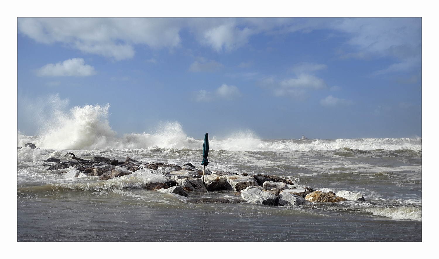 | capitan Ombrello si erge in tutta la sua fierezza ed ordina ai frangiflutti di contenere la furia del mare.... che dire .... eroe per un giorno.... |