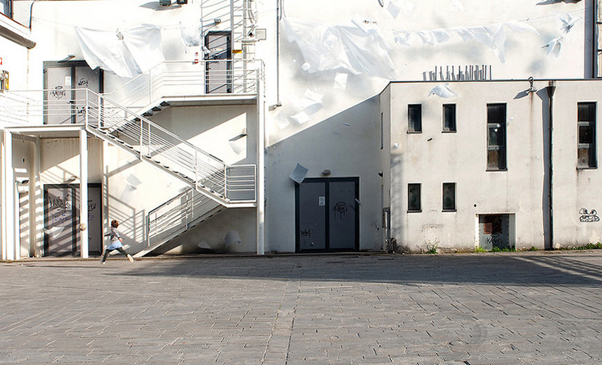 Bella scena, dal bimbo in azione alle lenzuola svolazzanti.