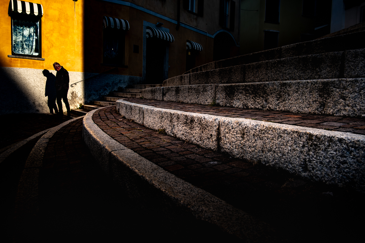 Le linee dei gradini, oltre che a puntare ottimamente il soggetto, sembrano aggiungere un "peso" sulle sue spalle, aumentando la drammaticità...