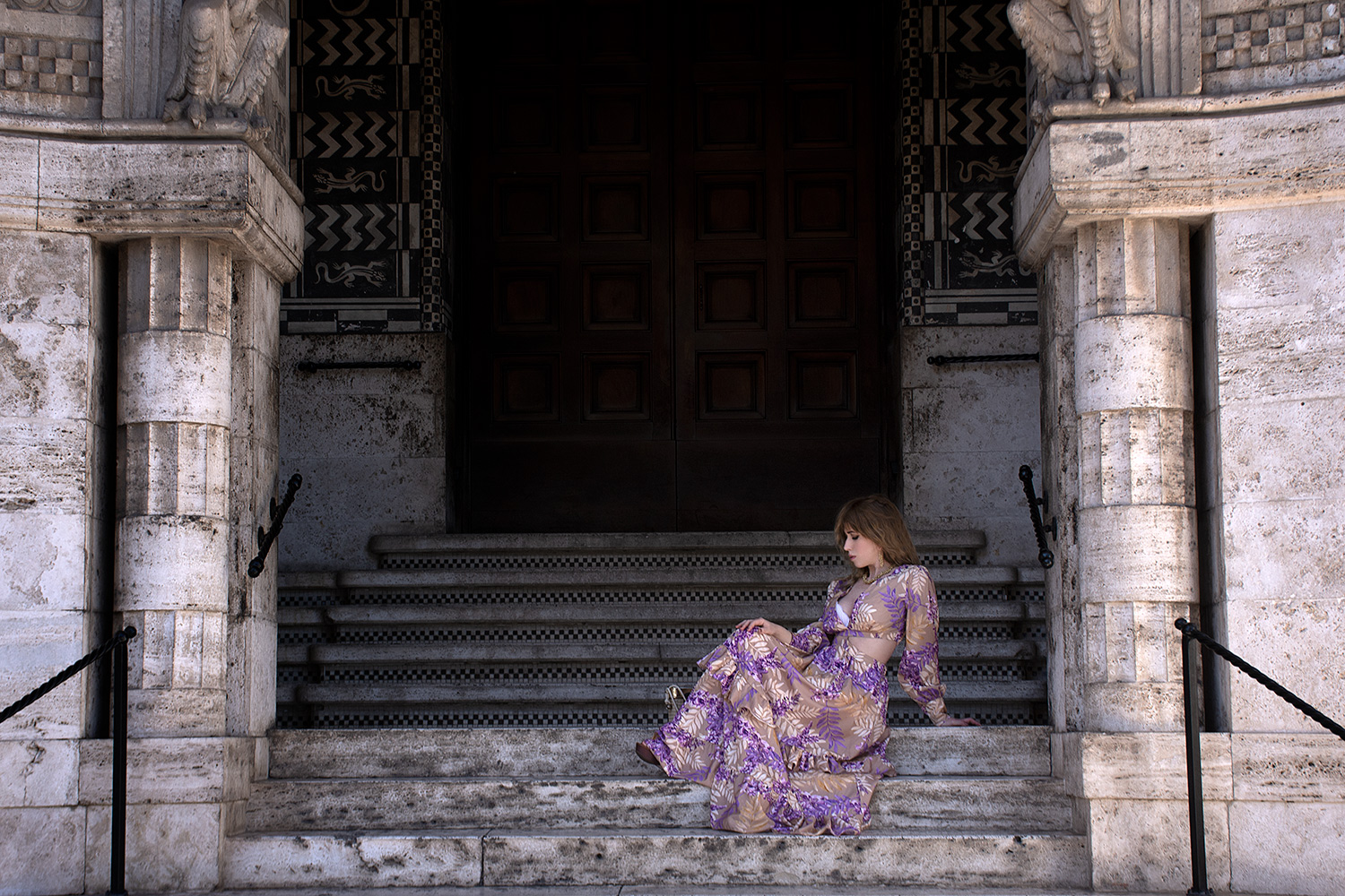 Sinceramente AndyL a me pare che quando si ha un contesto architettonico così 'presente' e bellissimo (potrebbe essere il Coppede' romano ?) la modella dovrebbe essere più 'mimetizzata' ,passami il termine.