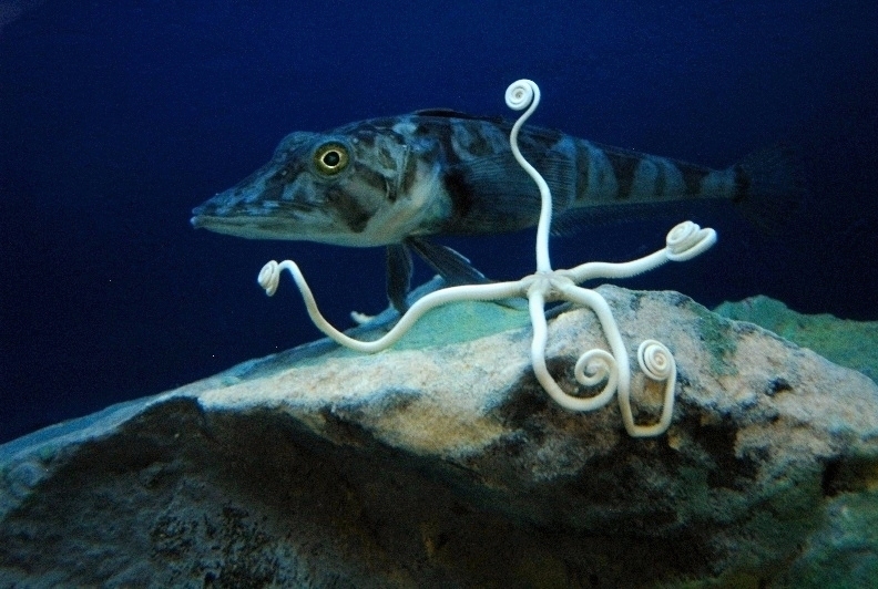 Si tratta di un pesce e di una stella marina di ambienti artici.. La foto è stata scattata all'acquario di Genova.