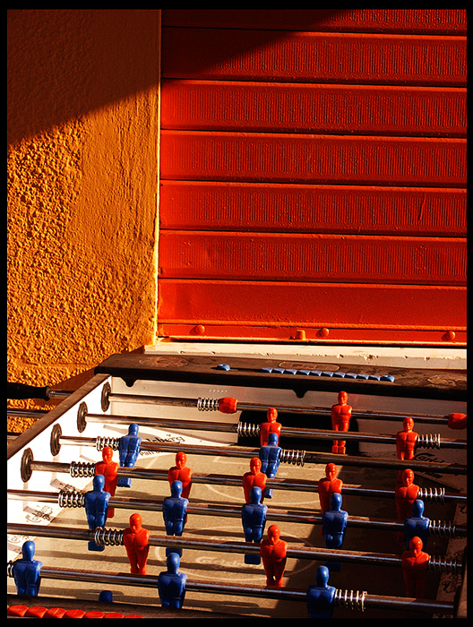 bellissima la luce sullo sfondo un po meno sul calciobalilla...proverei a lavorare sul colore sul solo calciobalilla..