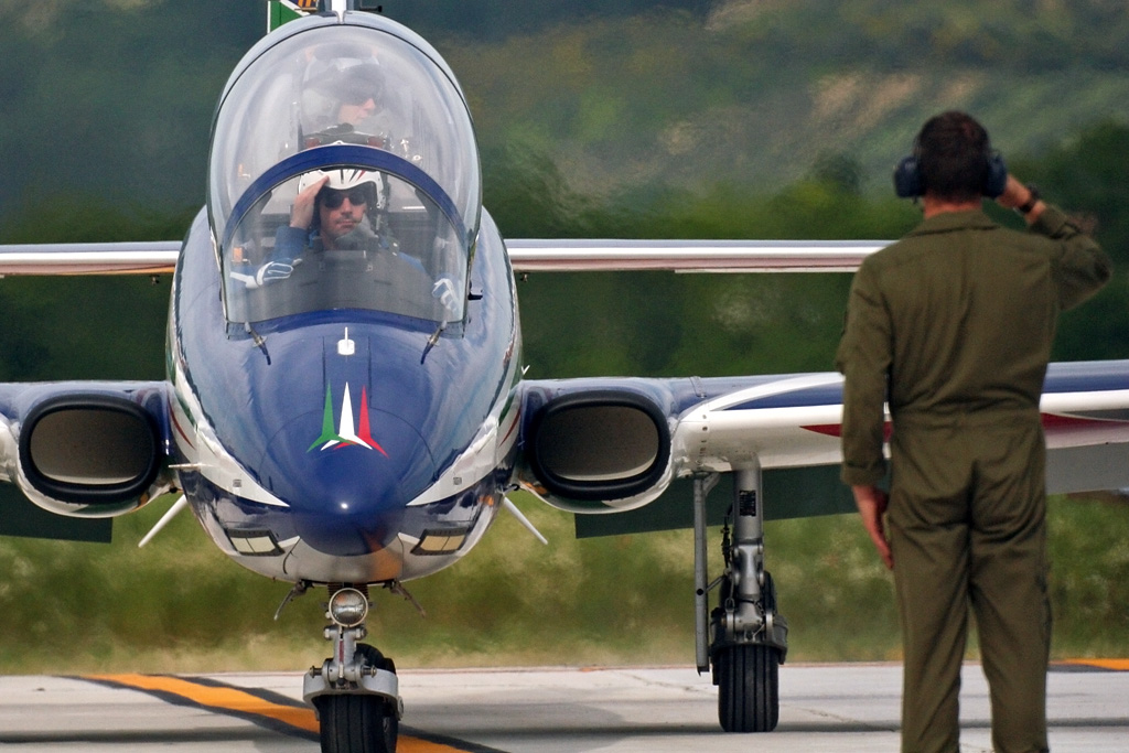 Avevo un problema fondamentale: il 500mm fisso!! Avrei voluto inquadrare tutto ma proprio non potevo. Se mi fossi spostato indietro avrei preso la grata che mi divideva dal parcheggio degli aerei. La foto è stata scattata tra le maglie della rete (molto larghe, quasi 12cm x 6 o 8 a occhio) e quindi, il taglio era inevitabile! O la testa del pilota sopra o le gambe dell'assistente a terra! Ho scelto quest'ultimo e, per errore, ho troncato anche la ruota del carrello anteriore!! Quando l'ho rivista...