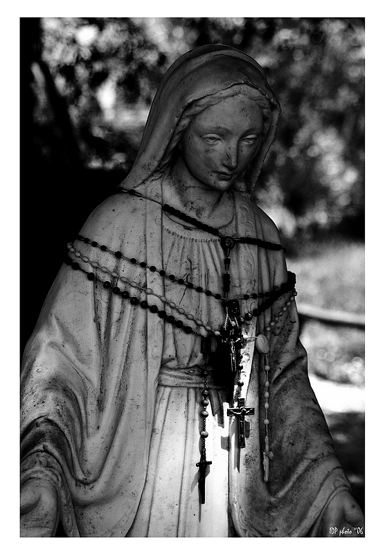 Gioco di luce terrificante, quasi un faretto spot sulla Madonna.