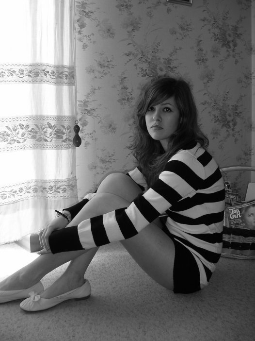 mentre trovo particolare la tua espressione che assieme al B/n e al tuo vestito da un senso anni 60 allo scatto!!!