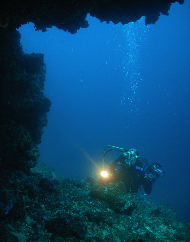 Grazie tante, lo scatto è stato tosto percjhè ho operato senza flash, scaricate le pile. Ho dovuto dare 1/20 sec. e 4.3 diaframma. Si vede il tempo lungo dalle bolle del sub che sono un pò mosse. Cosa che forse dà un tocco, l'unico, di dinamicità alla scena statica. Ho provato a schiarire le pareti dell'arco con un illuminatore ma si perdeva il centro dell'attenzione.