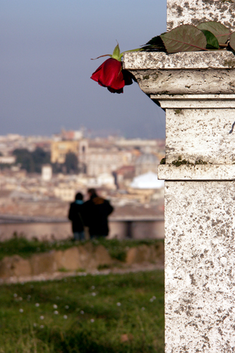 Mi piace la rosa che, un po' triste, guarda con un filo d'invidia la coppia che osserva felice il panorama.
