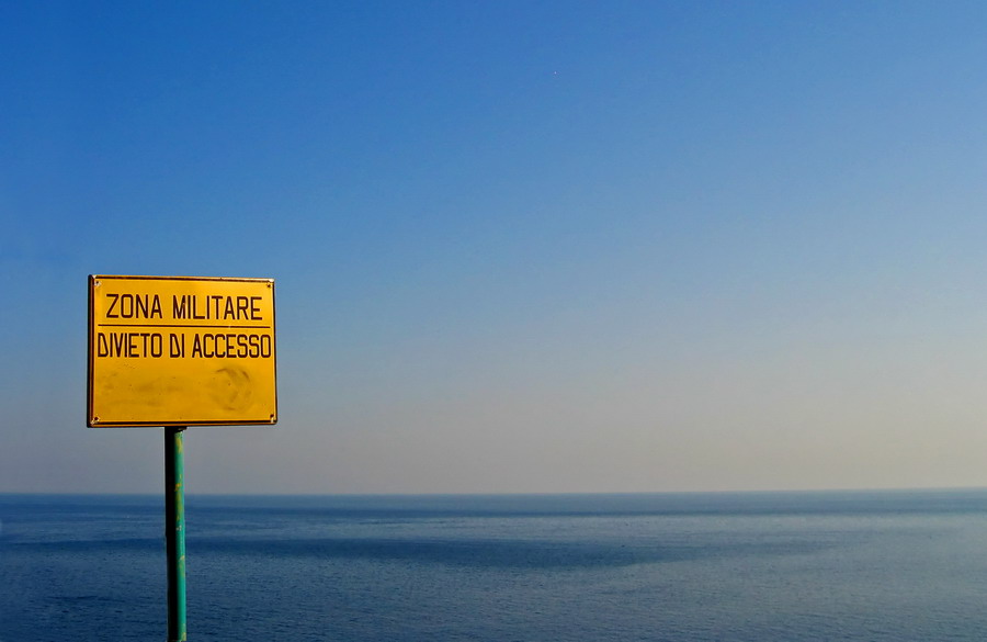 Non ho eseguito nessun fotomontaggio: il cartello si riferisce ad una base militare posta a sinistra dell'immagine; Il cartello non l'ho toccato: la parte di cui ti riferisci, Corto, è realmente così.
