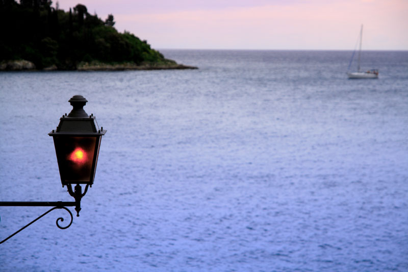 Lampione e barca si bilanciano perfettamente lungo la diagonale.