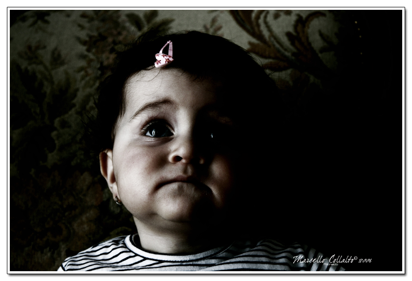 bella l'espressione "sospesa"della bimba...però io avrei optato per un pò più di luce..anceh se sarebbe cambiata l'atmosfera....interessanti i colori!