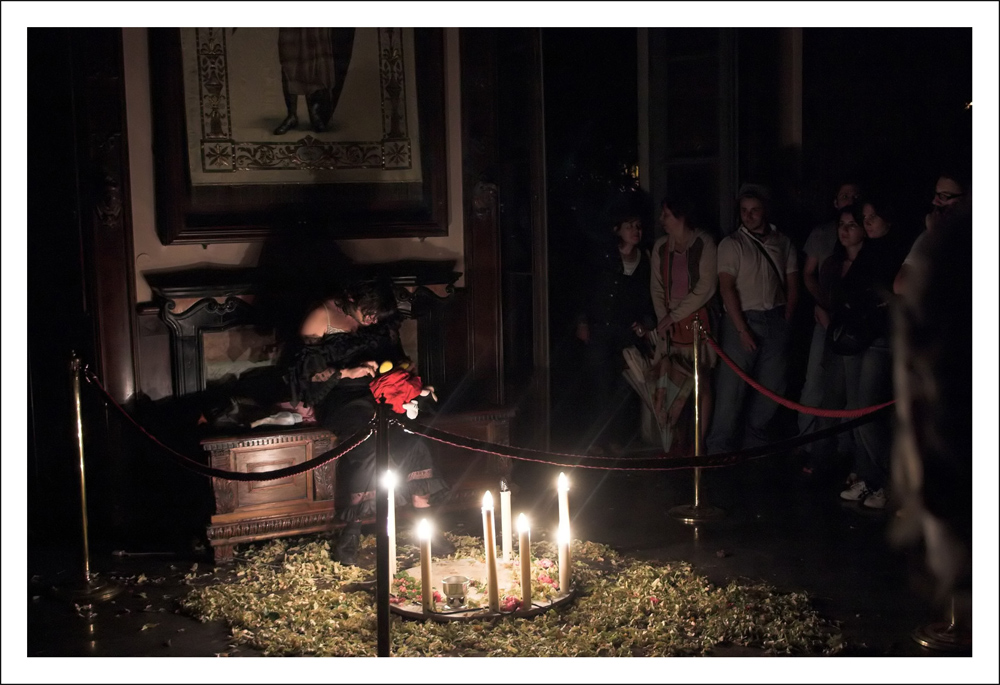 cordoni e paletti facevano parte dello spettacolo, esattamente come fosse la sua scenografia... (in altre sale della villa non c'erano)