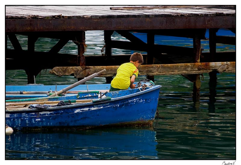 Dico la mia: avrei tagliato sopra la banchina, che secondo me aggiunge poco, e inquadrato più in basso incorporando nel fotogramma più acqua, e quindi maggior respiro per i riflessi della barca blu.