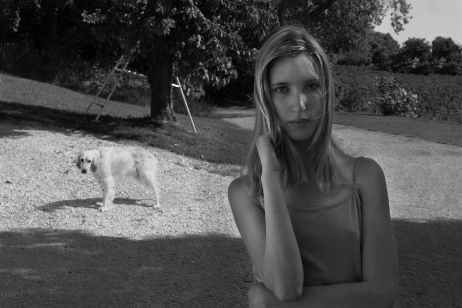 lo sfondo mi dà un senso di distorto, quasi irreale, come se il tutto provenisse da un sogno. l'unica pecca (se tale la posso chiamare) compositiva è che la luce sul cane gli attribuisce maggiore importanza rispetto alla modella. Forse lo volevi, ma istintivamente avrei preferito evidenziare lei.
