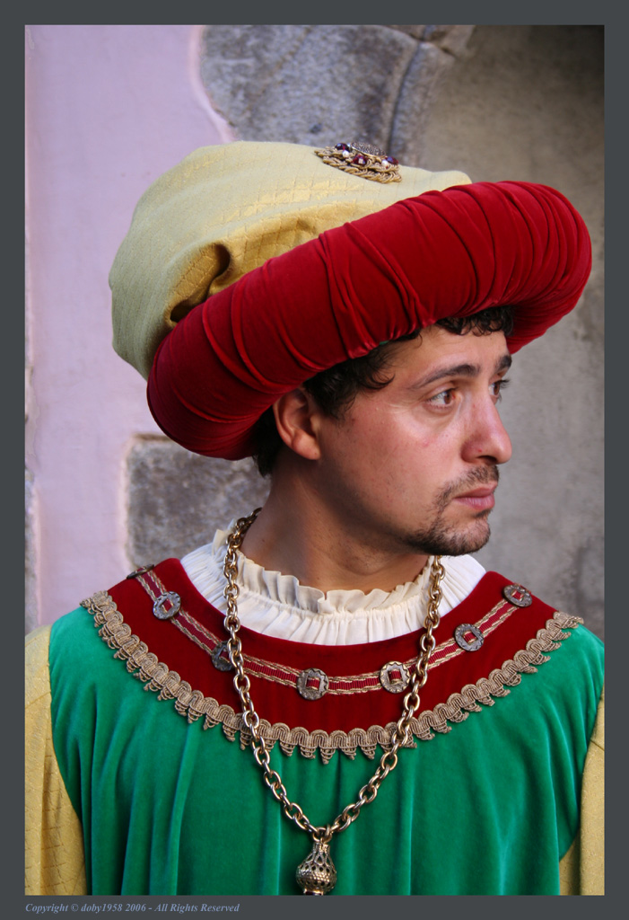 te lo chiedo perché a video mi sembra che il fuoco cada sul ricamo al collo del figurante e non sugli occhi, dove ce lo aspetteremmo. probabilmente però, se provi con una maschera di contrasto solo sul volto e ottimizzata per la stampa, recuperi tutto.