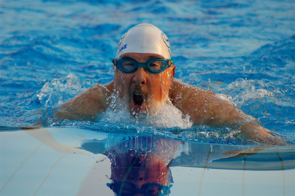 uhm... mi convince poco, più che nuotando sembra che era appoggiato al bordo (in primo piano) e che stia venendo su dall'acqua, il che non è che renda il tutto una bella foto...