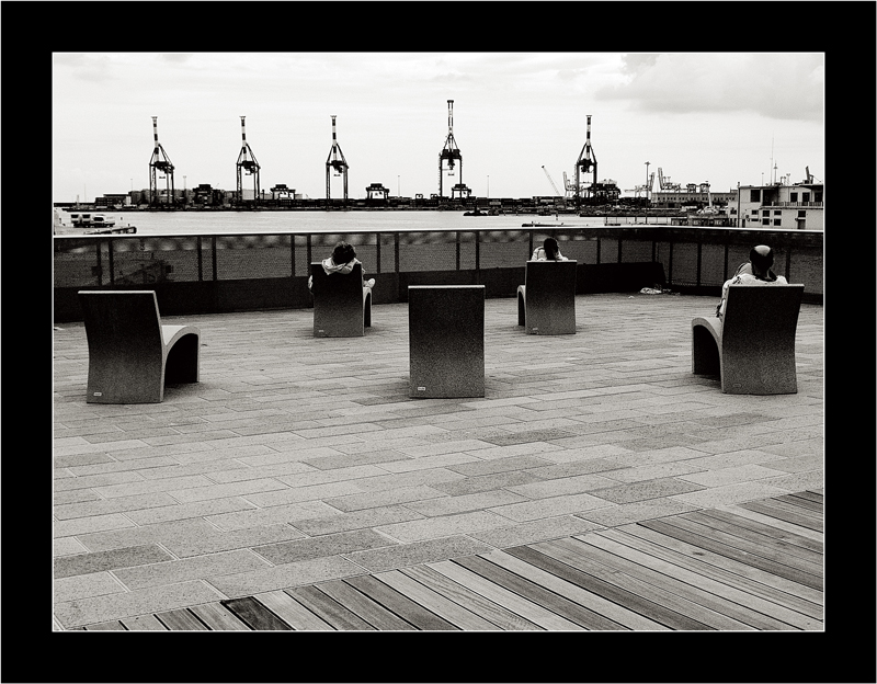 Cinque panchine per cinque cantieri navali... bella la composizione curatissima e il viraggio, i miei complimenti