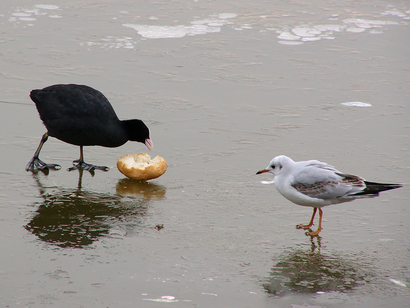Foto 6) la folaga non curante del nuovo arrivo, si avvicinò ulteriormente all'ambito pasto che per prima vidde