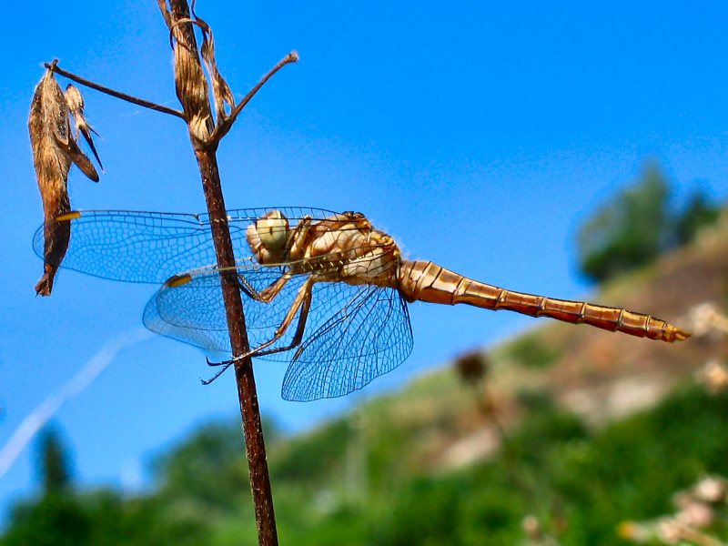 Al max si poteva tentare di abbassare il punto di ripresa e inquadrare solo cielo dietro alla libellula, ma non ho idea di come sarebbe potuto essere il risultato. |