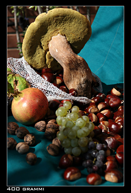 L'ha trovato mia mamma al paesello, e ho inventato una composizione al volo per rendergli omaggio prima di finire in padella... insomma, un porcino di quasi mezzokilo non è che sia una cosa di tutti i giorni!! Smile