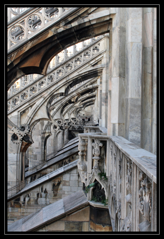 Si nota una fuga che parte con la balaustra a dx e conduce verso il fondo, però l'uniforme illuminazione dei vari piani rende il tutto un po' piattino e non molto chiaro.