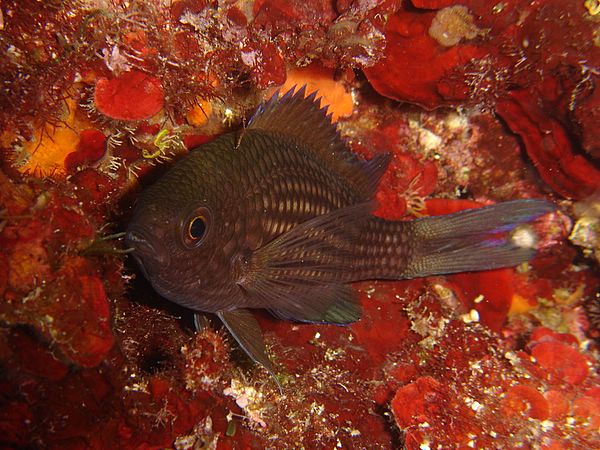 | gparrac ha scritto: | Grazie per la dedica ... di una fotografia bella come sempre, piuttosto curiosa per me: la castagnola nera sono abituato a vederla nel blu, quasi non pensavo che potesse intanarsi a questo modo.