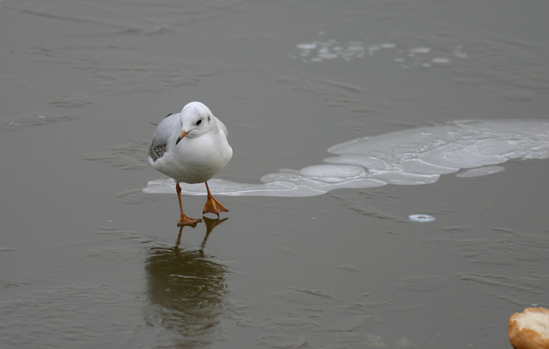 La mio opinione è che sia potenzialmente una gran bella foto che rende bene la malinconia invernale con il gabbiano vagabondo, ma io avrei tagliato via il pezzo di pane che mi disturba un (bel) po' e avrei messo casomai un altro titolo...