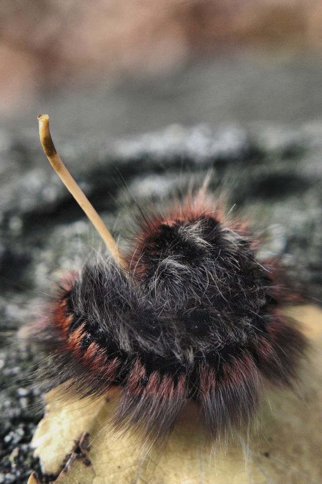 in teoria è un bruco... pelosissimo! con nessuna voglia di staccardi dalla sua fogliolina!