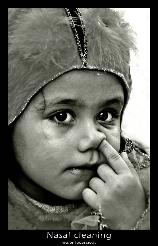 Un'attività considerata unanimamente ineducata diventa un gesto istintivo - per quale motivo il diametro della narice è uguale a quello della falangetta? - e colmo di tenera spontaneità.