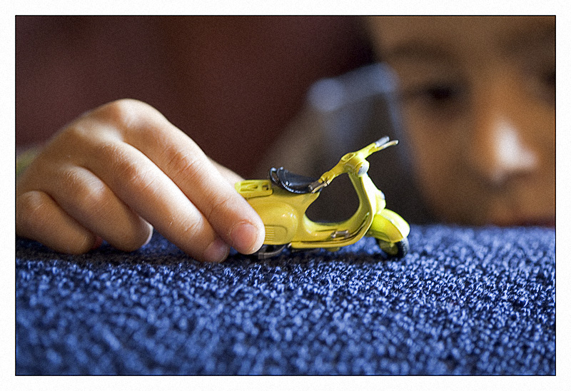 secondo me, veramente non male, una buona scelta di PDC selettiva, una buona composizione unica cosa, avrei diminuito un poco di area sotto che mi sembra eccessiva ed un pochino fastidiosa a vedersi. La scelta di sfocare il viso ci fa pensare ai suoi sogni, a quando potrà avere un suo scooter vero, la sua fantasia galoppa, è già in strada con il vento che gli accarezza il viso!  _________________ ° Vittorio ° www.photovictor.it
