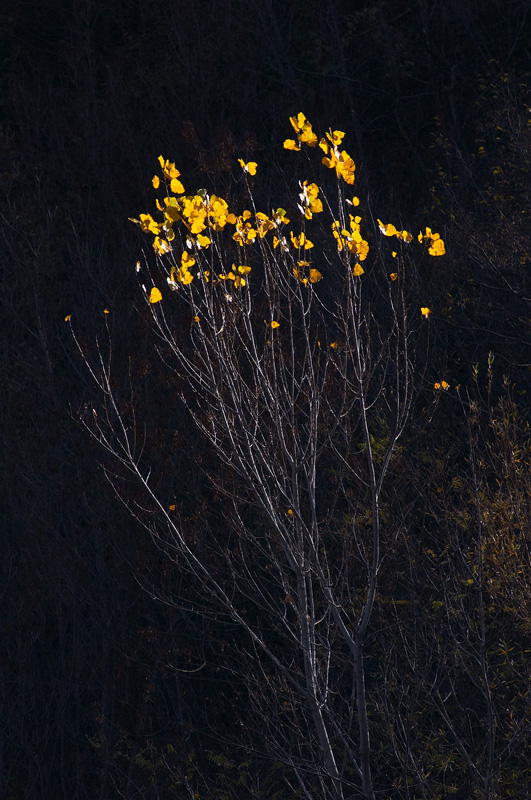E' una foto molto semplice... Pensavo di riuscire a farne di più giocando sul controluce e invece durante la passeggiata le occasioni non sono state poi molte. Però mi sono imbattuto in questo albero che ormai sta arrendersi all'inverno nonostante la temperatura ancora tutt'altro che rigida... |