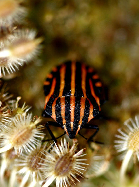 inquadratura piacevole...peccato per il fuoco che non è sugli occhi e per la poca pdc.......poi non mi convincono i colori di questo graphosoma lineatum........hai forse esagerato col contrasto??? Ok!