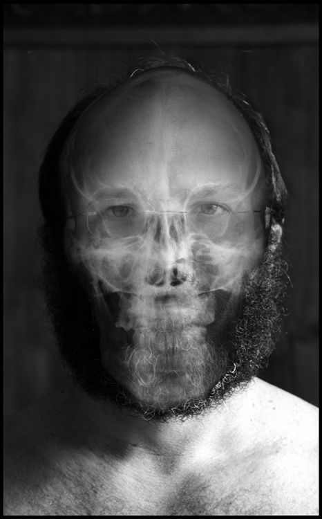Sono andato a farmi una radiografia del cranio e poi l'ho inserita con ps in un mio ritratto.