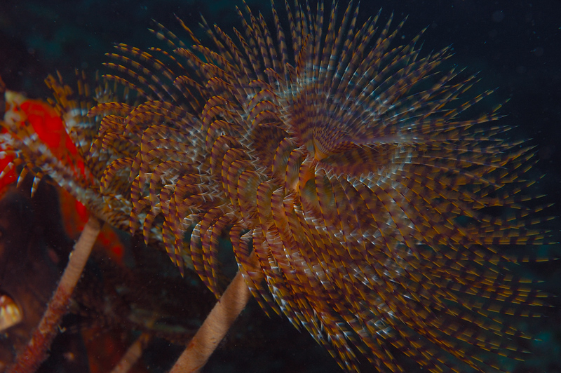 Tentacoli orali di due spirografi. Si tratta della stessa specie fotografata da skipper 767. Gli spirografi sono dei lombrichi marini che costruiscono un tubo pergamenaceo entro il quale vivono e dal quale fanno fuoriuscire la corona di tentacoli per catturare il nutrimento.