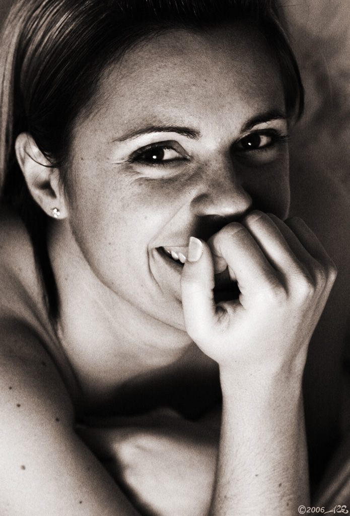 simpaticissimo viso che ride,graziosa ragazza, una posa molto naturale e spontanea, bella anche la scelta del colore seppia. Ok!