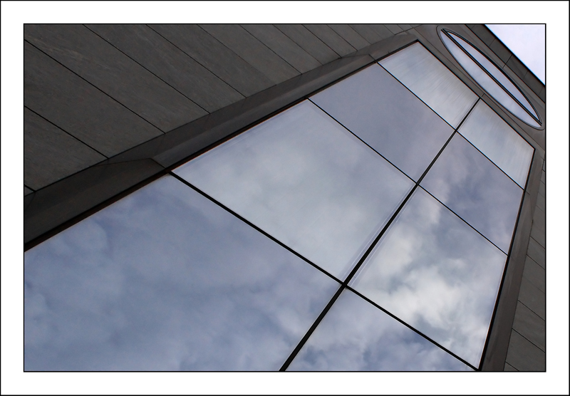 ottima contrapposizione tra il rigore delle righe che scandiscono la facciata e il caos delle nubi del cielo...