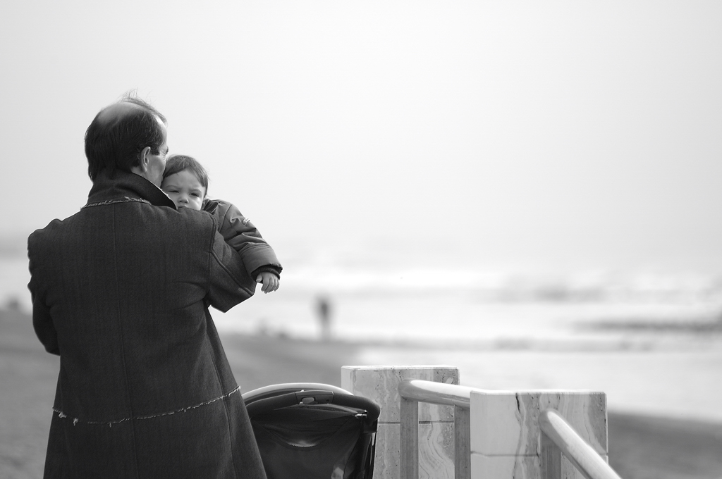 Giorno festivo, il papà divorziato che ha la possibilità di passare una giornata con il figlio piccolo, sono all'aria aperta. Un tenero abbraccio e lo sguardo verso il mare cercando la speranza.....