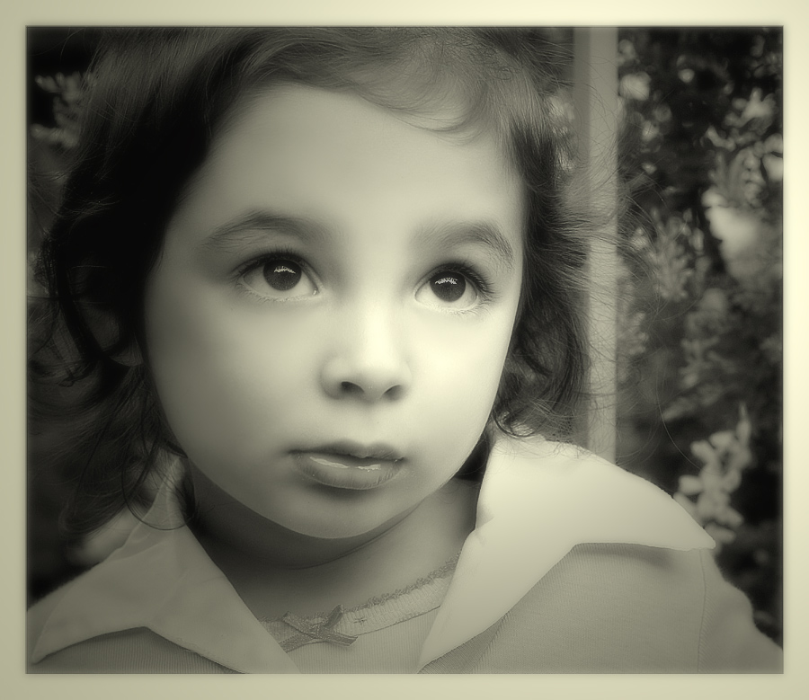 per quanto riguarda l'elaborazione, a parte l'effetto flou ed il duotone ho usato una maschera di contrasto e lisciato un po' le guanciotte per renderla ancora più "bambolina di porcellana" Smile