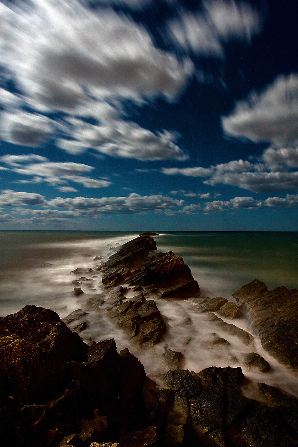 Se posso permettermi un "autocommento"... ho visto tante lunghe esposizioni notturne in questi mesi, ma poche mettono in evidenza la "drammaticità", favorendo anzi la quite spumeggiante o appiattendo del tutto mari quasi in burrasca. Vi assicuro che persino gli scogli stanotte avevano paura del mare LOL LOL LOL