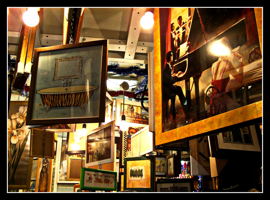 Il coraggio di scattare verso una scena cosi' 'geometricamente intricata' e' stato premiato con un'immagine comunque gradevole e priva di eccessivi elementi di disturbo (forse il particolare che da' piu' fastidio e' il riflesso della lampadina sul quadro a dx). Certo, in casi simili a questo e' forse preferibile cercare di concentrarsi su un particolare, isolare un soggetto, pittosto che inquadrare tutto. Comunque, anche cosi', questa foto ha un suo senso documentaristico.