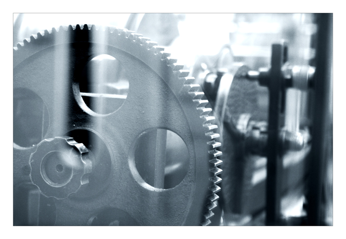...non mi piace molto la mascherina sfuocata in primo piano...avrei preferito degli ingranaggi ben definiti...oliati e usurati...magari solo due ruote dentate...con un viraggio più pesante che creasse un'atmosfera più oldie...insomma...questa è una mia visione...anche frutto della lettura della tue parole...