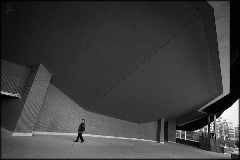 Diciamo che questo scatto è una sorta di esercizio di composizione in cui, una volta individuate le geometrie volute, ho atteso che il soggetto si presentasse nella posizione richiesta. (A dir la verità non ho dovuto attendere un granché).
