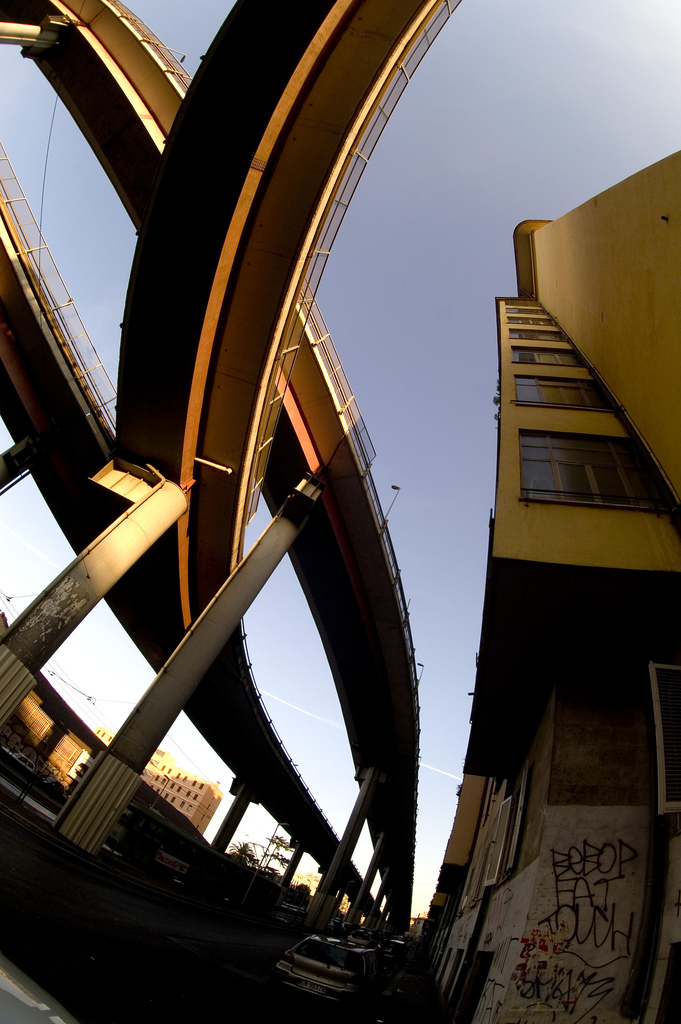Secondo me però ha un suo fascino perverso. Mi da una strana emozione sostare sotto i piloni e sentire il fiume di vite che mi scorre sopra. Mi piace percorrerla perchè e come andare sulle montagne russe tra palazzi e scorci inaspettati, sopratutto all'alba e al tramonto, quando si creano dei giochi di luce particolari e una enorme luna rossa si affaccia sulla città.