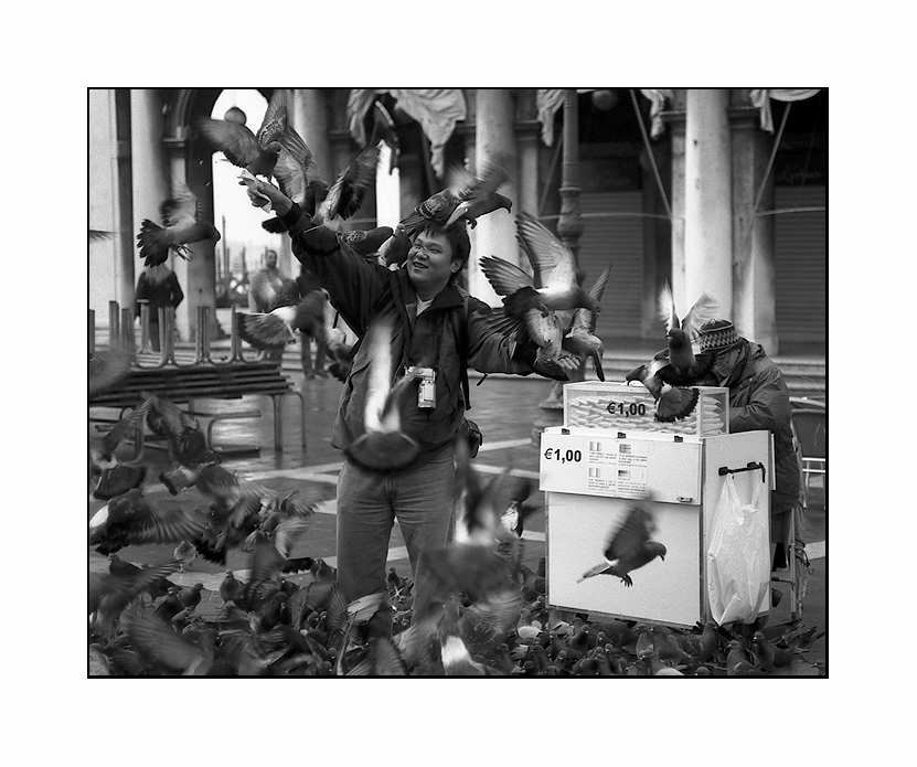 Mi piace molto. Mi piace il b/n, il movimento dei piccioni e l'espressione