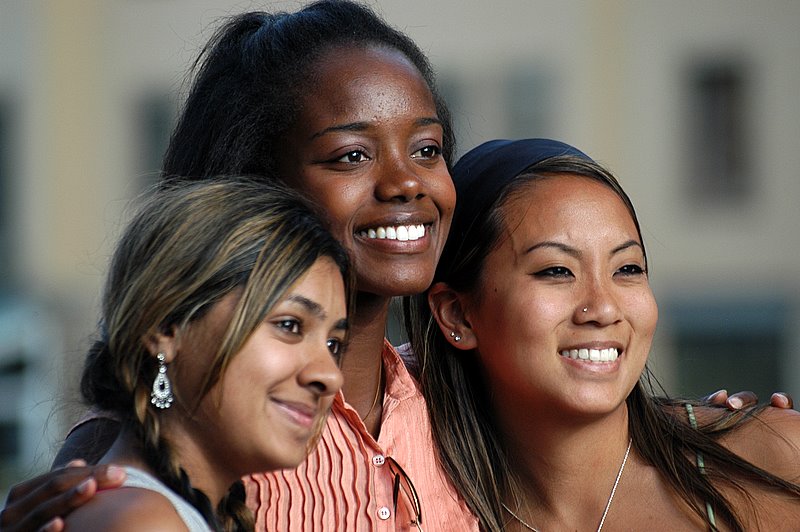 son tre bellezze diverse... tipiche delle loro regioni... uno scatto multietnico che lo si puo leggere come se i confini di cultura non esistano... il tutto maggiormente enfatizzato dalla grande gioia che sprizza fuori dai loro sorrisi e sguardi!